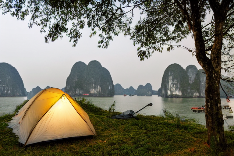 100% AI Generated Campsites 🤖 Blue Tent located at paved campsite during golden hour located in Halong Bay.Upvote 👍Copy Link New Campsite